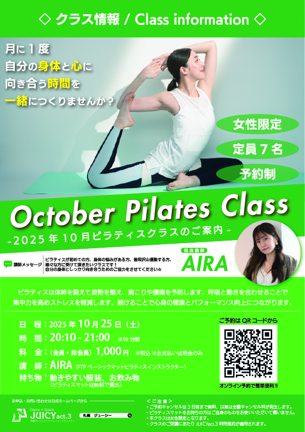 < 【ご予約はコチラ!!】JUICYact.3「ピラティスクラス」のご紹介★